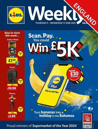 This page provides you with the latest offers and special buys for Lidl UK. Every Thursday and on weekends you can find here this week's fresh offers and current in-store deals and sales. Lidl offers best prices for both food and non-food items - up to 50% lower than its competitors. In the latest leaflet you can browse through the hand-picked award-winning food products from various categories - dairy, deli, bakery, vegetable, meat, beer & wine. Lidl isn’t only about grocery. Every week you can find here sales of selected heavily discounted items like clothing, baby products or kitchen appliances. Popular brands available only in Lidl stores include Esmara, Crivit Sport, Lupilu, Livergy, Jolinesse or Pepperts.