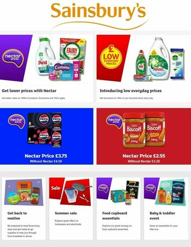 On this page, you will find the latest offers and special buys for Sainsbury's, one of the largest supermarket chains in the United Kingdom. Every Friday a new range of special buys is released here. There are more than 1400 Sainsbury's grocery stores in the UK that offer best prices for both - food and non-food items. But Sainsbury's isn't only about grocery. You can enjoy exclusive offers on items like clothing, kitchen appliances, gardening products, electricals, homewares, DIY tools and much more. Don't miss any of them!